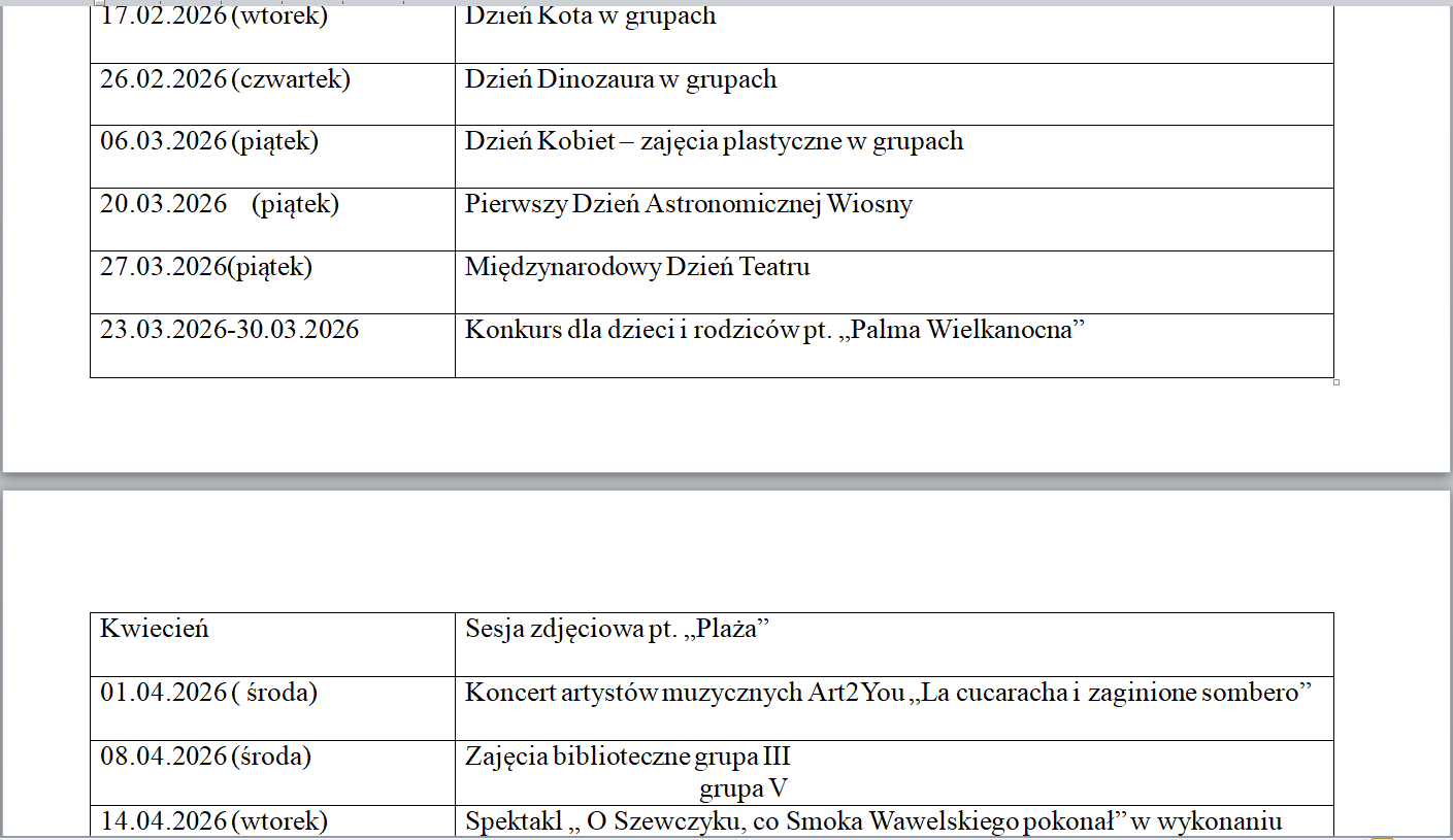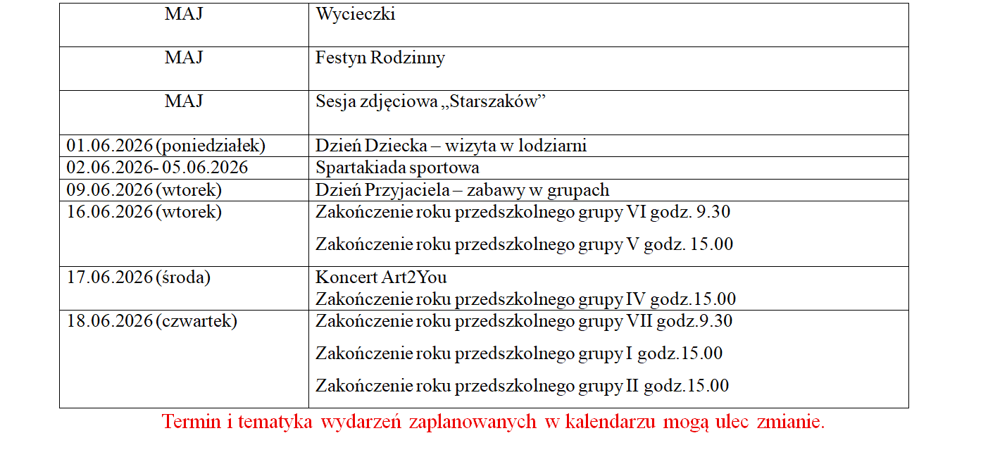 Kalendarz roku szkolnego - Przedszkole nr 85
